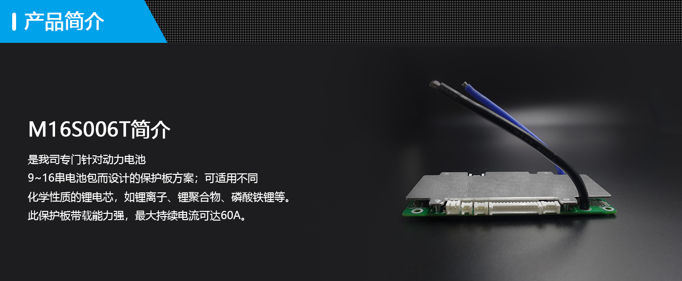 河马M16S006T是我司专门针对动力电池 9~16串电池包而设计的保护板方案;可适用不同 化学性质的锂电芯,如锂离子、锂聚合物、磷酸铁锂等。此保护板带载能力强,最大持续电流可达50A。
